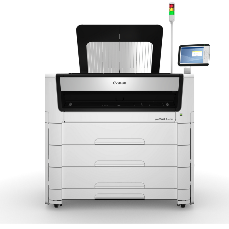 استمتع بوقت تشغيل من دون انقطاع وجودة طباعة ثابتة مدعومة من مؤسسة Canon لتقديم الخدمات. إضافة إلى التوافق بين الطابعات وأجهزة الإنهاء، تتم حماية استثماراتك للمستقبل. تُعد الفئة plotWAVE T-series طابعة شاملة الإمكانات حقيقية، مزوّدة بميزة المسح الضوئي والطباعة والنسخ. إذا كنت بحاجة إلى سعة إضافية، فيمكنك تعزيز إنتاجيتك باستخدام Scanner Professional II المستقلة وذات السعة العالية. أو اختر خيارات الإنهاء المتوافقة الأخرى.